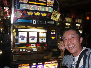 安部さんがスロットデビュー。狙っていた台があったので薦める。29ドルで大当たりに。