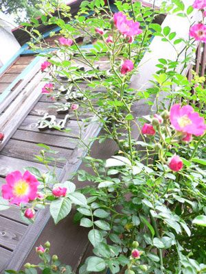 | お店の片隅に名前もないばらが。。 プライスも¥500.。。家に連れてかえりました。 たくましくどんどん伸びています。 |